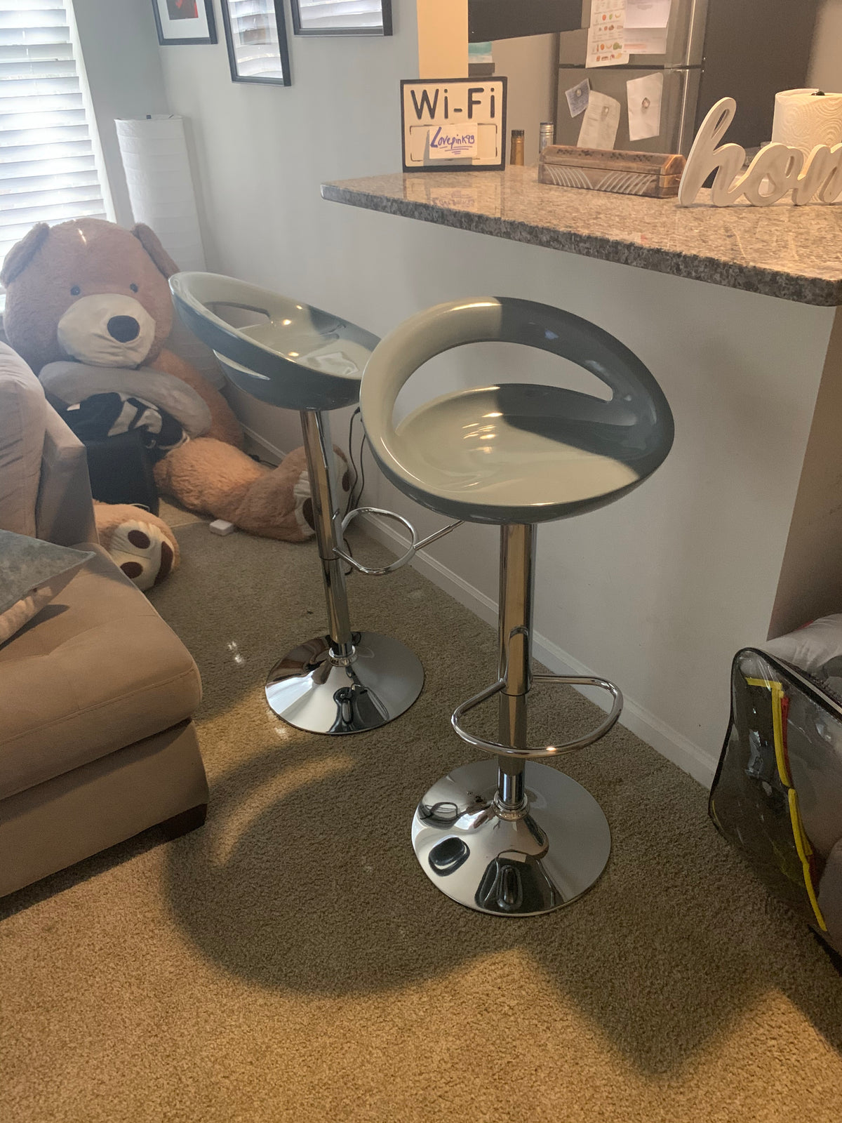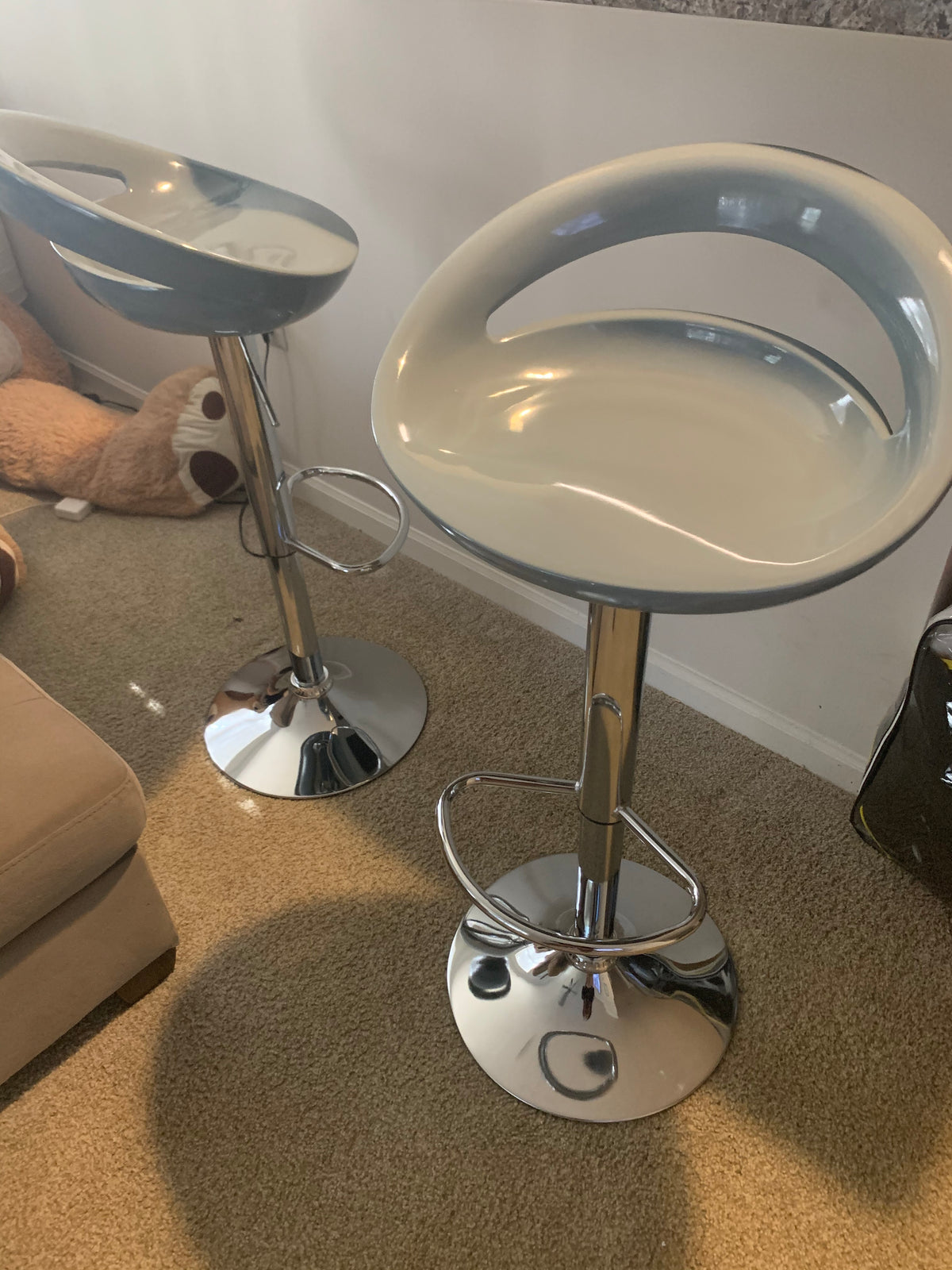 Rotation 360° fluide, hauteur ajustable de 65 à 85 cm, base chromée robuste. Parfait pour votre cuisine, bar ou espace de travail moderne.